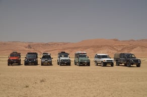 Tag 7. Der nächste Abschnitt bringt die Gruppe in Richtung algerische Grenze, wo die berühmte Rommelpiste befahren wird - der erste Kontakt mit der Sahara! Nach einer Übernachtung in der Wüste folgt die Überquerung des Salzsees Chott Djerid mit Stopps bei versteinerten Dünen, bevor es dann nach Douz, dem "Tor zur Wüste", geht.