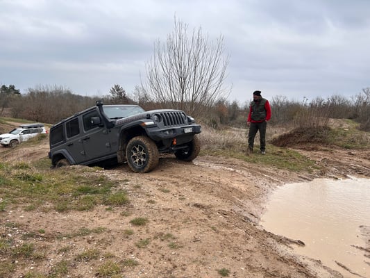 Mutige Frauen und Männer haben sich bei teils sehr kühlen Temperaturen in den Geländepark bei Saverne begeben, um ihr Können am Geländewagen zu verbessern. Unter der fachkundigen Leitung von David Balliet haben die Teilnehmenden das Gelände erkundet und gelernt, die Fahrzeuge im Grenzbereich zu bewegen. Der angesagte Regen war zwar ausgeblieben, dennoch war es im Gelände noch an vielen Stellen nass und es gab reichlich "Pfützen" und Schlamm.
